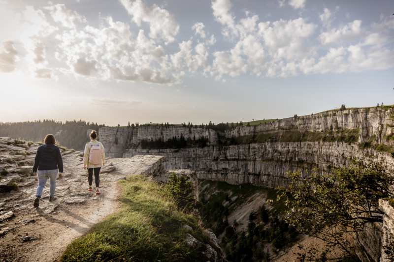 Le cirque rocheux du Creux du Van est un incontournable à découvrir durant la belle saison. Accessible par des chemins de randonnées, vélo ou voiture, le site offre un panorama exceptionnel à 360° sur les lacs du plateau et les vallées jurassiennes. Lors des moments moins fréquentés de la journée, il n’est pas rare d’y croiser quelques chevreuils, chamois et même des bouquetins !